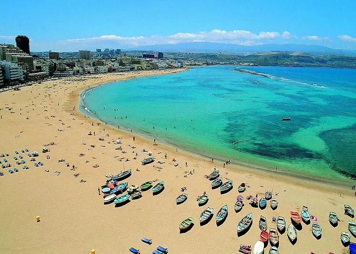 Das Apartment Fabulous Canteras First Beachfront Las Palmas / Gran Canaria liegt in 5 Fußminuten Entfernung vom Denkmal El Cubo und ist 30 km vom Flughafen Gran Canaria entfernt. Diese 1-Zimmer-Apartments mit einer Terrasse befindet sich ein paar Schritte entfernt von der Avenida José Mesa y López.